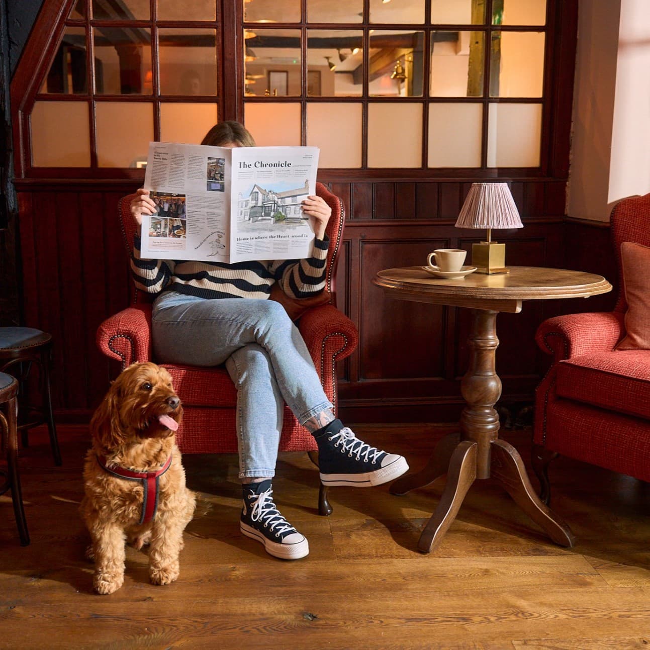 Dogs are welcome throughout many parts of our pubs. Whether you’re popping in for a pint or enjoying a long, lazy lunch, you’ll find dog friendly spaces where your pooch can settle in comfortably by your side.